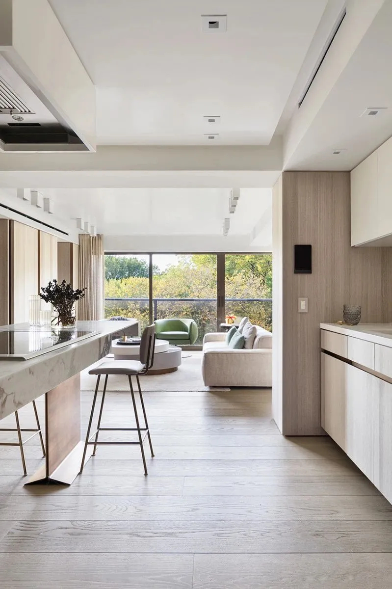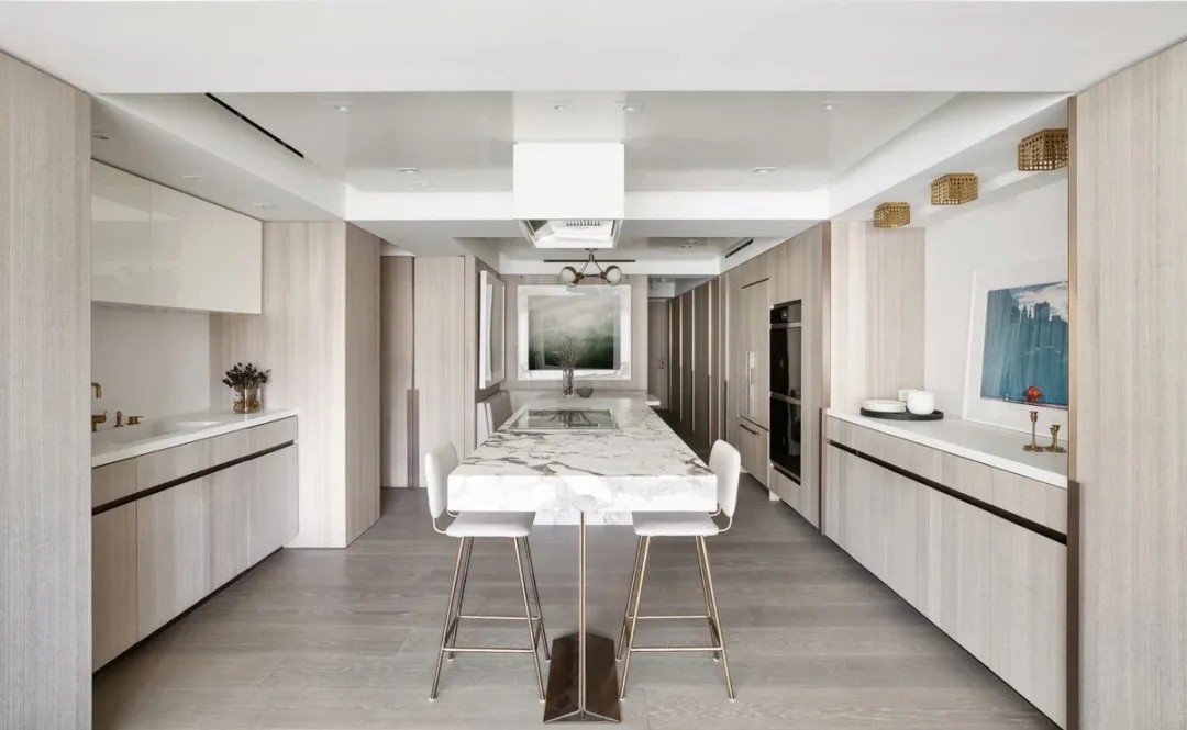 这套坐落于纽约第五大道的复式住宅,由 WORKSHOP/APD 量身改造。针对屋主多孩家庭的居住需求,设计师摒弃了传统小户型分割布局,打破固有空间格局,将原本三间局促狭小的房间打通整合,彻底摆脱空间零碎、局促的弊端。格局的重构,不仅大幅拉伸了室内通透感与舒展度,也为整体居家设计、多元生活场景预留了充足的发挥空间。