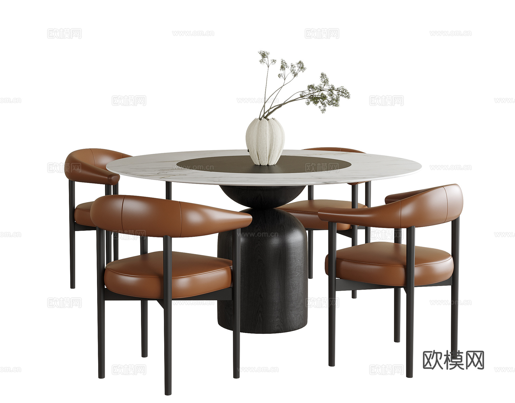 现代餐桌椅组合 餐椅 单椅 圆形餐桌 餐椅su模型