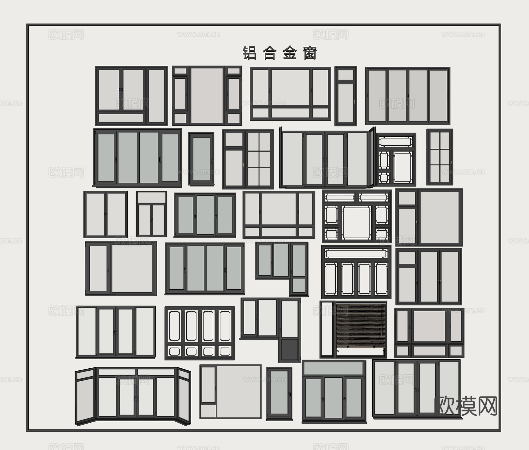 铝合金窗组合 铝合金单开门窗 铝合金双开门窗 铝合金推拉窗su模型 ID-16105023