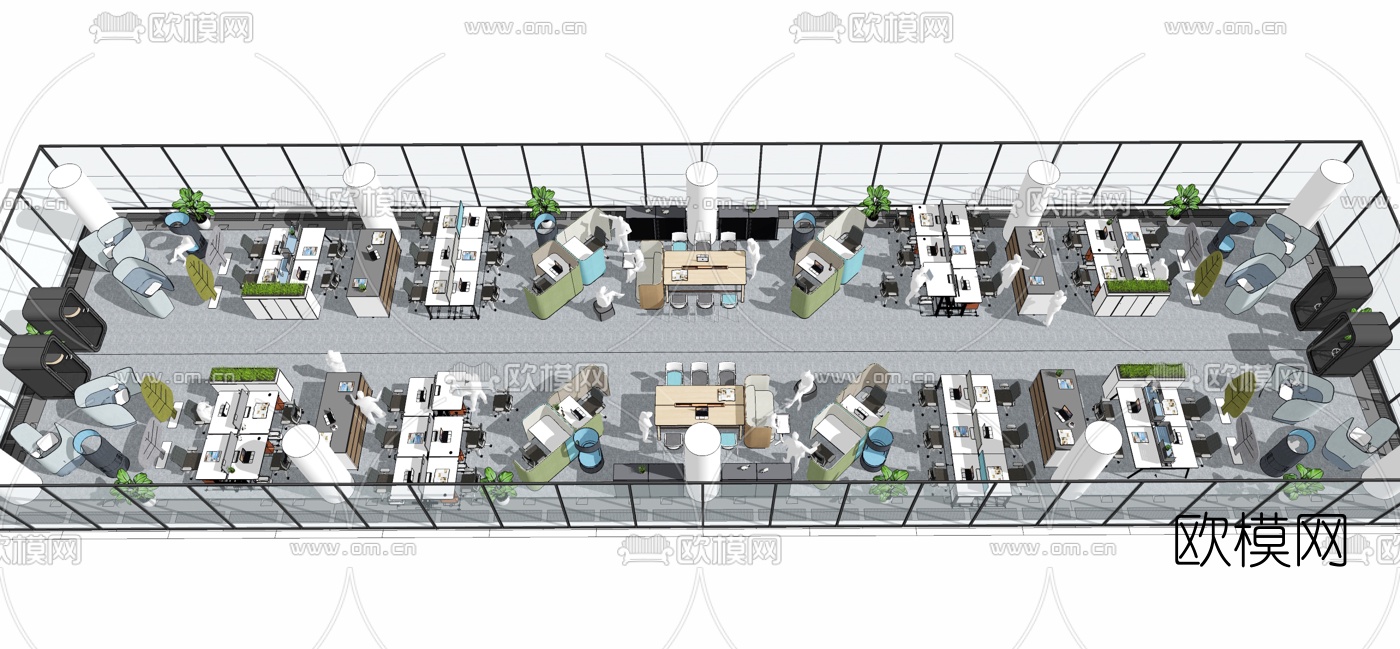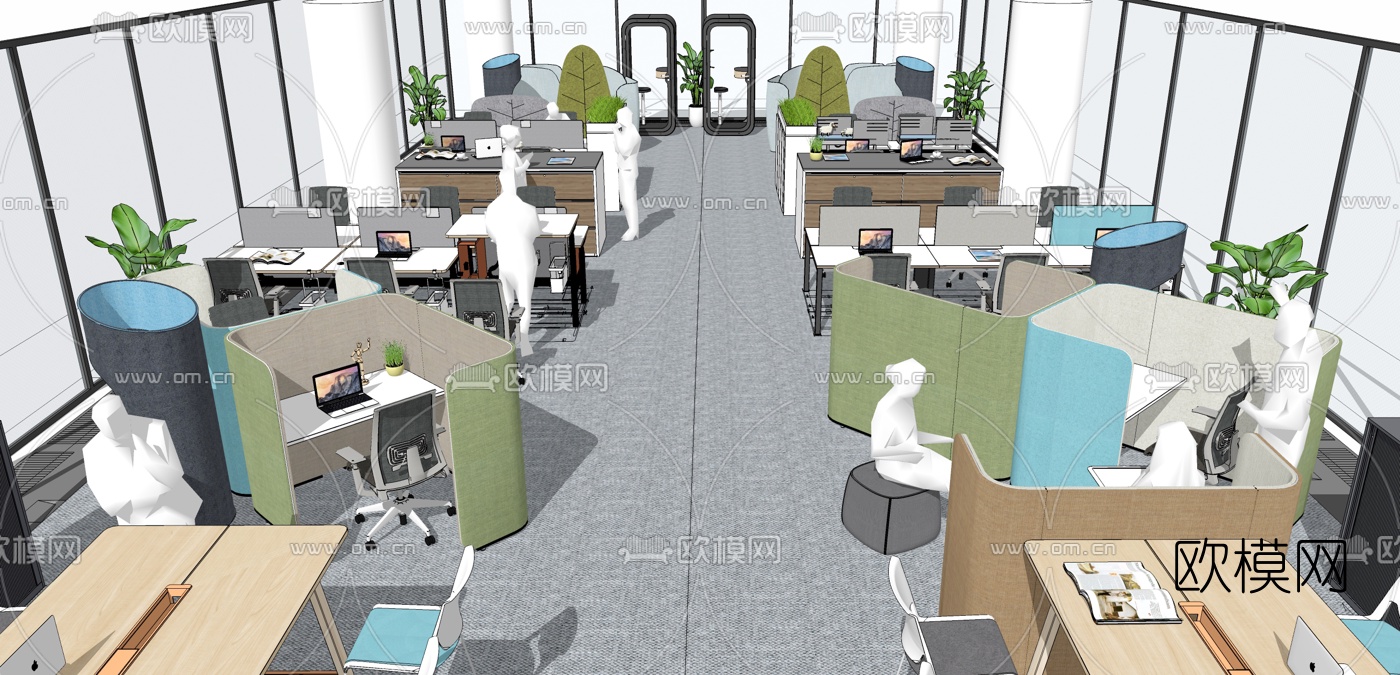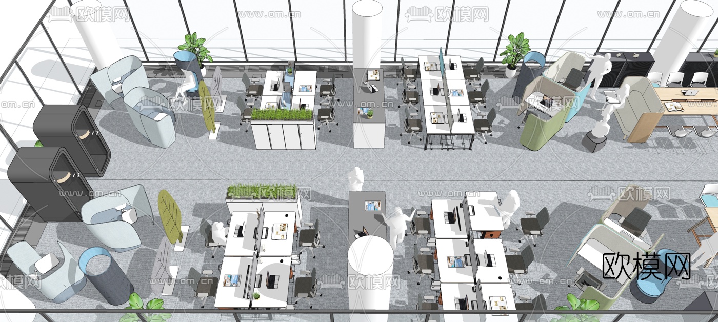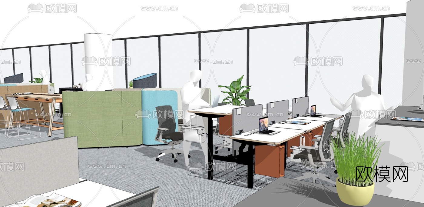 现代卡座沙发 办公卡座沙发 洽谈卡座沙发 靠墙卡座沙发 花艺su模型